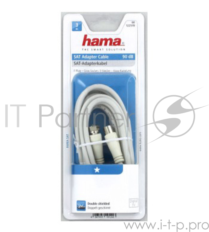Кабель антенный Hama Coax (m)/Coax (f) 3.0м. феррит.кольца Позолоченные контакты белый (00122519)