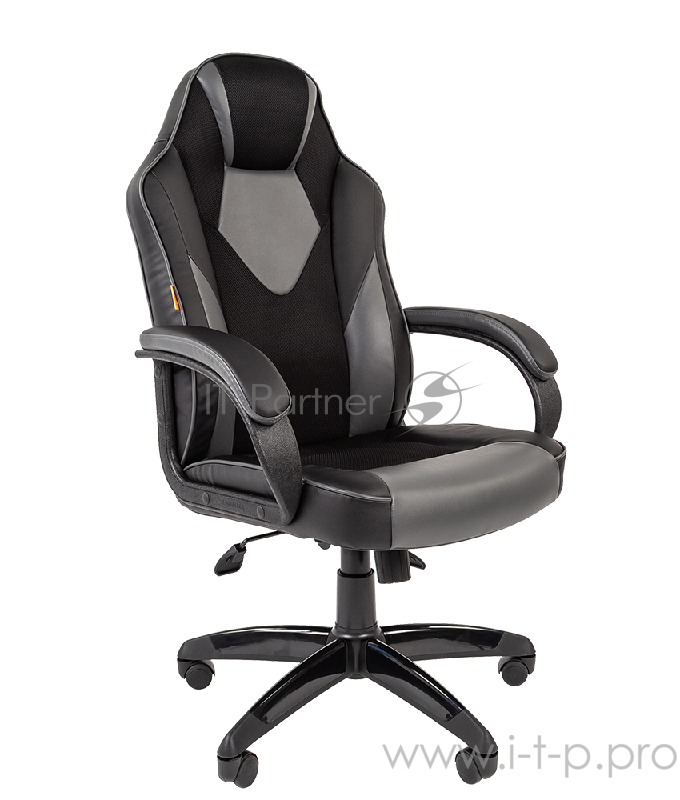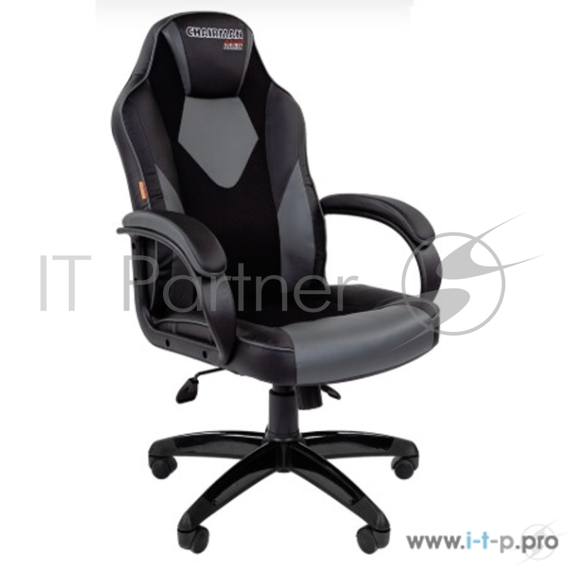 Игровое кресл Chairman game 17 чёрное/серое о (Экокожа/Ткань TW, пластик, газпатрон 3 кл, ролики, механизм качания)