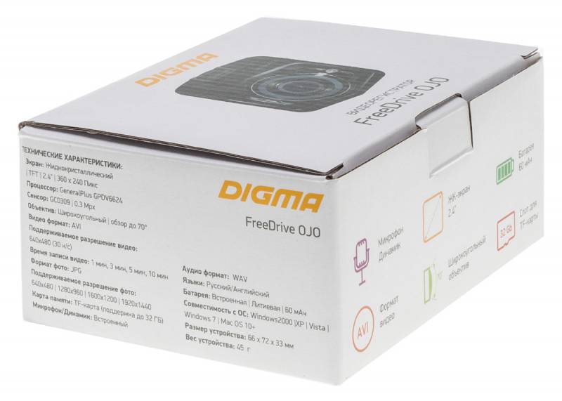 Видеорегистратор Digma FreeDrive OJO черный {0.3Mpix 480x640 480p 70гр.} GPDV6624 [415352]