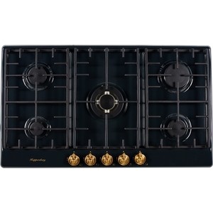 Газовая варочная поверхность Kuppersberg Газовая варочная поверхность металл, ширина 90 см, 5 газовых конфорок, WOK конфорка повышенной мощности, автоподжиг, газ-контроль, чугунные решетки, цвет черный/ручки цвета бронза
