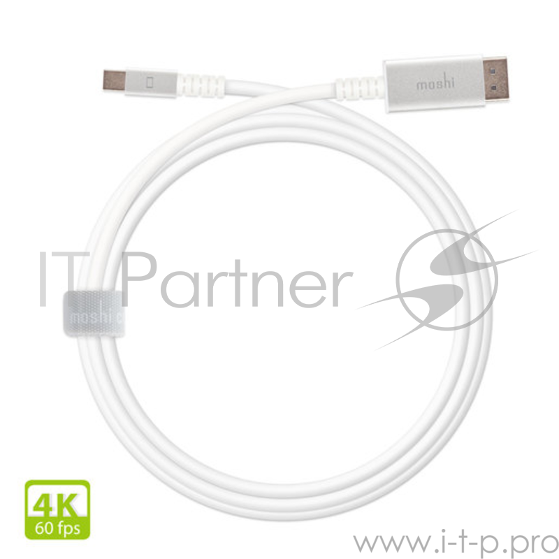 Кабель Moshi Mini DisplayPort на DisplayPort, длина 1,5 м. Разрешение 3840 x 2160, 60 fps, 4K. Цвет белый.