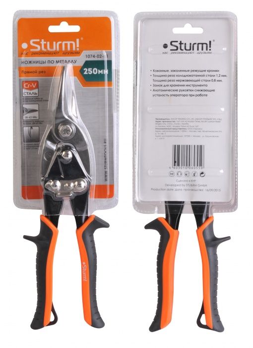 Ножницы по металлу Sturm 1074-02-01 прямой рез, 2-Х РЫЧАЖНАЯ СИСТЕМА ДЛЯ ОБЛЕГЧЕНИЯ РЕЗА [1074-02-01]