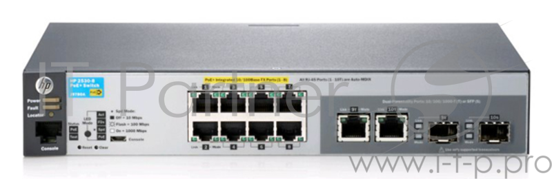 Коммутатор HP 2530-8-PoE+ Switch (J9780A) Managed, L2, 8*10/100 + 2*10/100/1000 or SFP, PoE+ 67W, Fanless design, Rackmount 19”