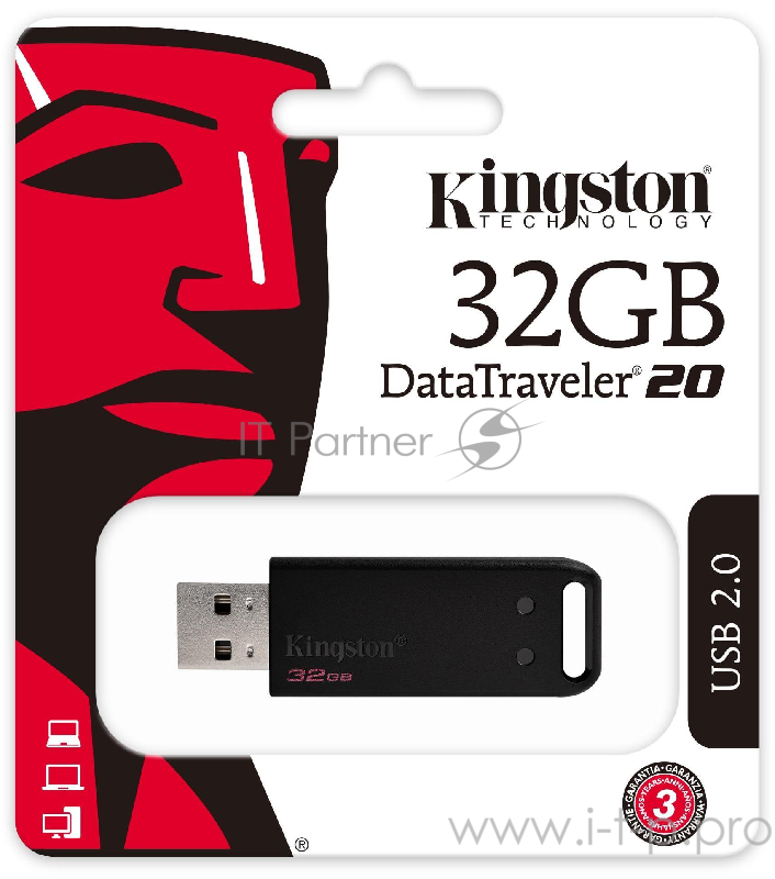 Флеш Диск Kingston 32Gb DataTraveler DT20 , USB2.0 черный