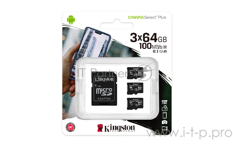 Флеш карта microSDHC 64GB microSDXC Class10 Kingston Class10 UHS-I Canvas Select up to 100MB/s с адапт.