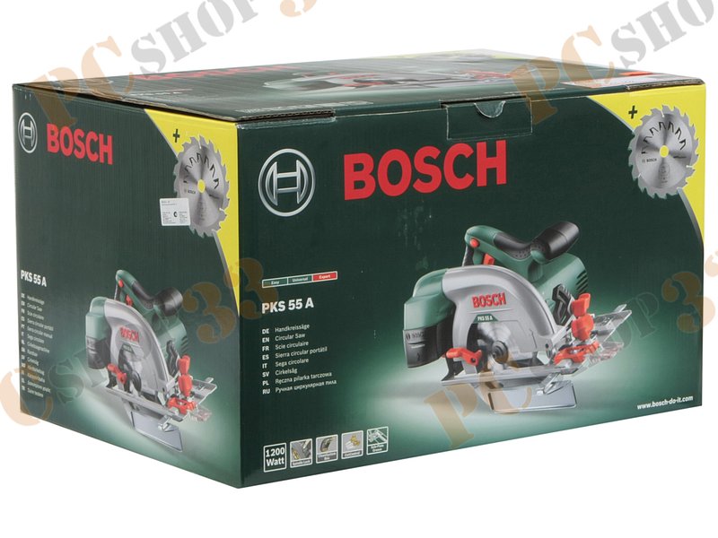 Дисковая пила Bosch PKS 55 A 0603501002 (1200Вт, 5600об./мин.) + пильный диск по дереву + пылесборник
