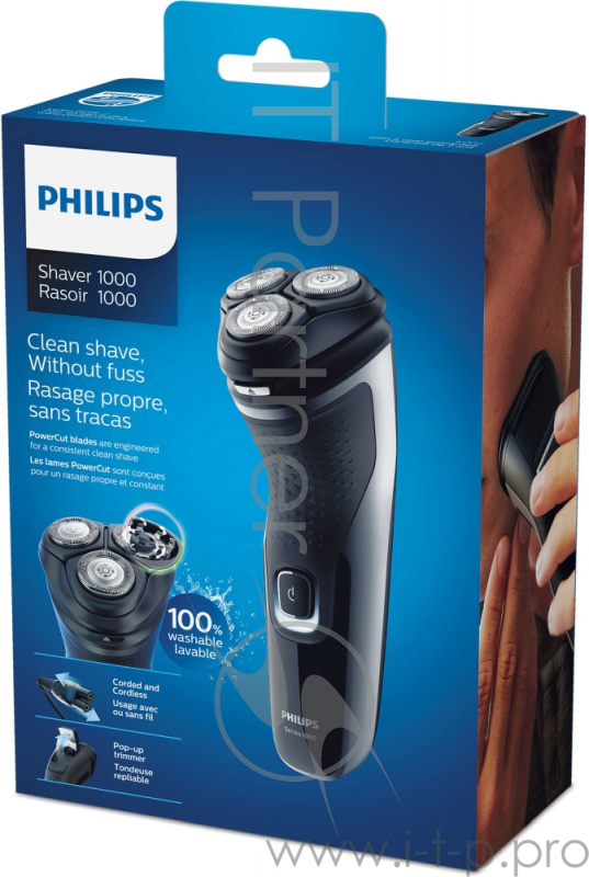 Бритва роторная Philips Series 1000 S1332/41 реж.эл.:3 питан.:аккум. черный/серый