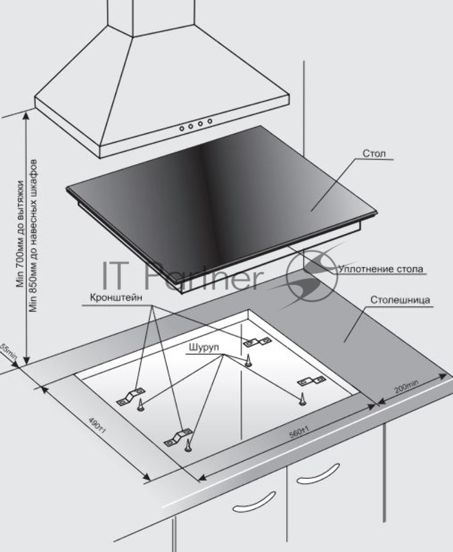 Высота варочной поверхности