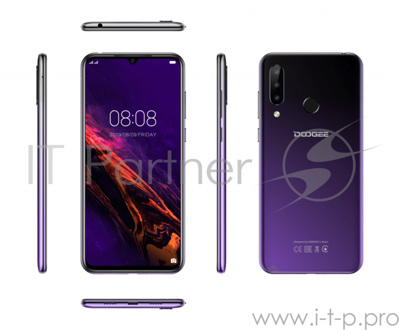 Смартфон Doogee Doogee Y9Plus Dreamy Purple, 6.3 1080x2280, 2.0GHz, 8 Core, 4GB RAM, 64GB, up to 128GB flash, 16 МП+8 МП+8 МП/16Mpix, 2 Sim, 2G, 3G, LTE, BT, Wi-Fi, GPS, Micro-USB, 4350 мА·ч, Android 9.0 (Pie), 158,9 ммx77,1 ммx8,4 мм, Triple Camera