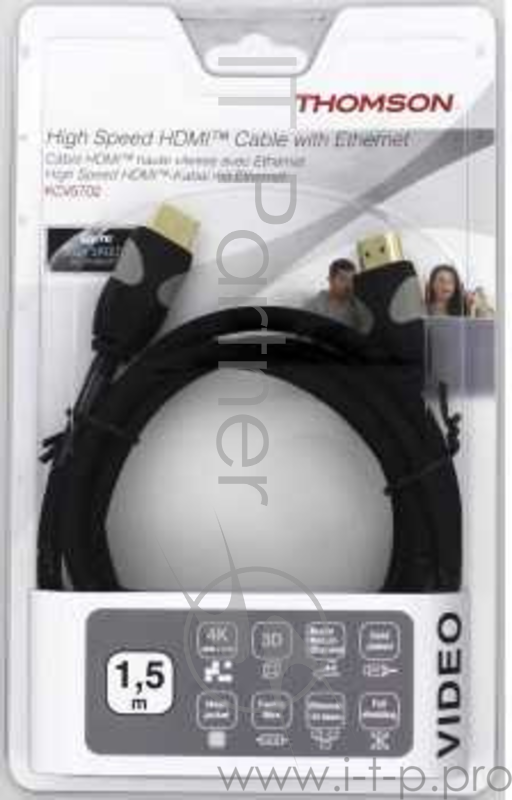Кабель аудио-видео Thomson High Speed HDMI (m)/HDMI (m) 1.5м. феррит.кольца Позолоченные контакты черный (00132106)