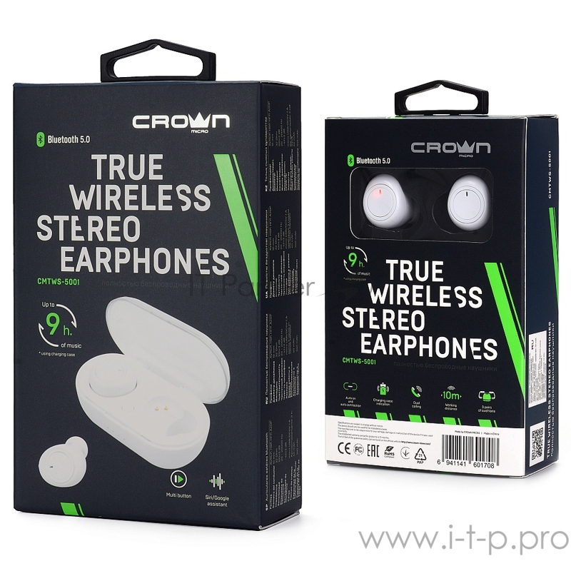 Полностью беспроводные наушники CROWN CMTWS-5001 white
