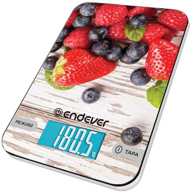 Весы кухонные электронные Endever Chief-508, рисунок Клубника, вес от 2 г до 5 кг, закаленное стекло, автовыключение