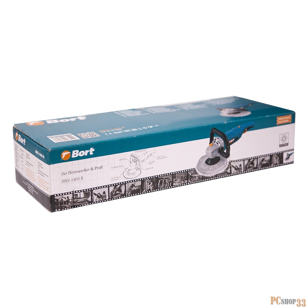 [Шлифовальные машины] Bort BWS-1405-R Машина шлифовальная угловая [91273000] { 1300 Вт, 3000 об/мин, 180 мм, М14, 3,2 кг, набор аксессуаров 4 шт }
