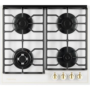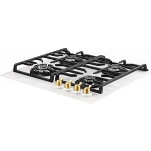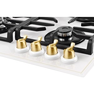 Газовая варочная поверхность Kuppersberg FQ 602 W , закаленное стекло, ширина 60 см, 4 газовые конфорки, автоподжиг, газ-контроль, чугунные решетки, цвет белый /поворотные переключатели цвета бронзы