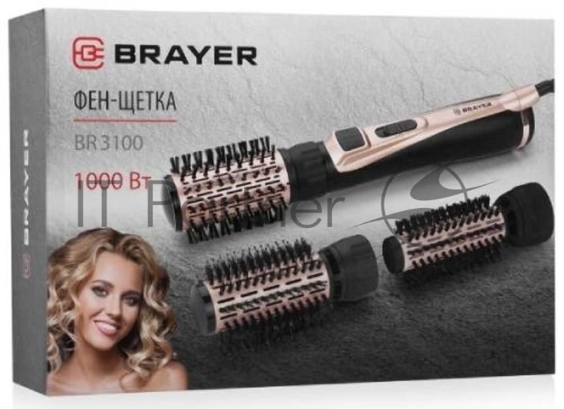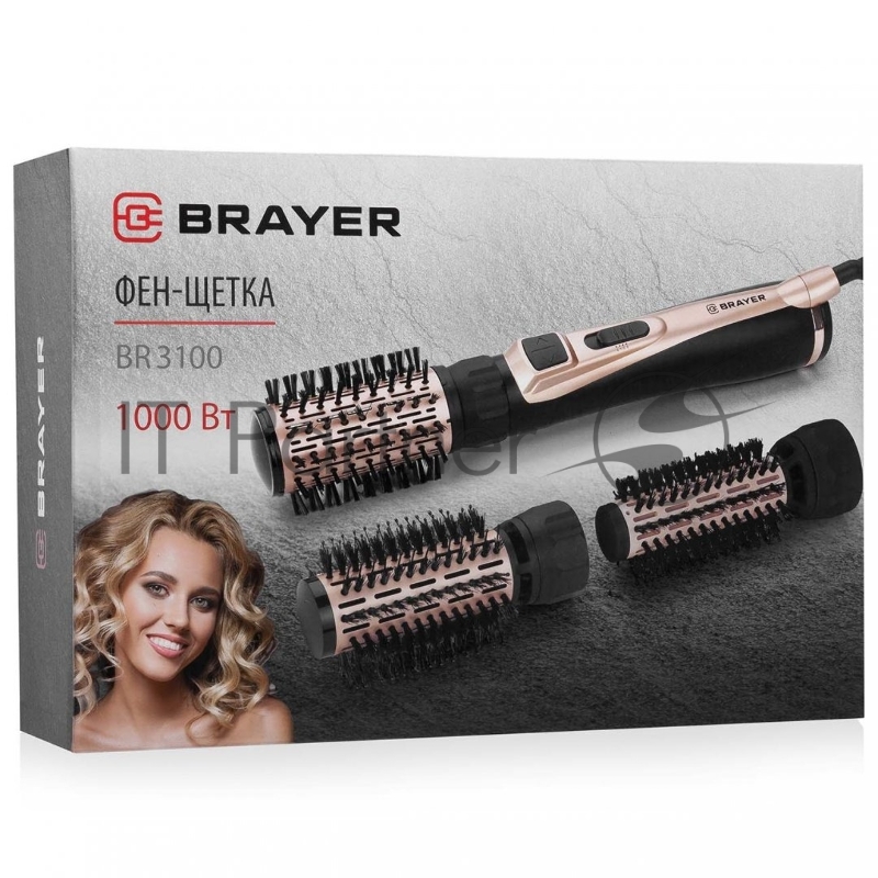 Фен -щетка BRAYER, 1000 Вт, 3 насадки: 35, 40, 50 мм, 2 скорости, шнур 1,8 м