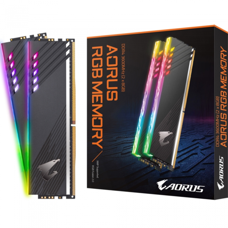 Память Gigabyte 16GB Gigabyte DDR4 3600 DIMM Aorus RGB Gray Gaming Memory GP-AR36C18S8K2HU416R Non-ECC, CL18, 1.35V, Kit (2x8GB), RTL {20}