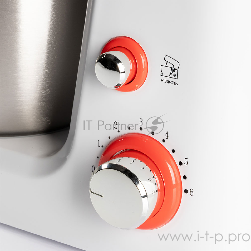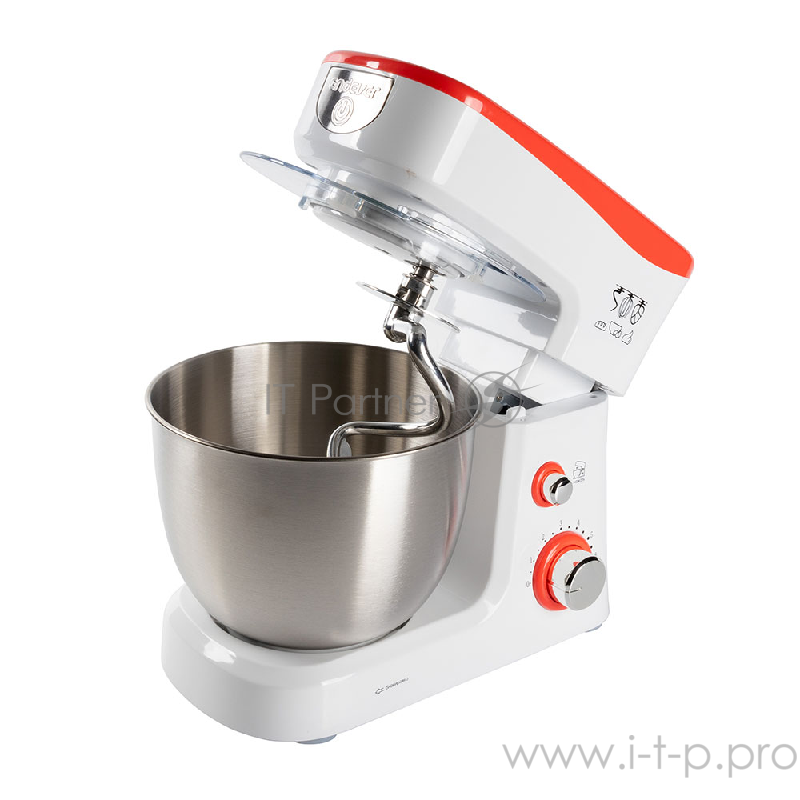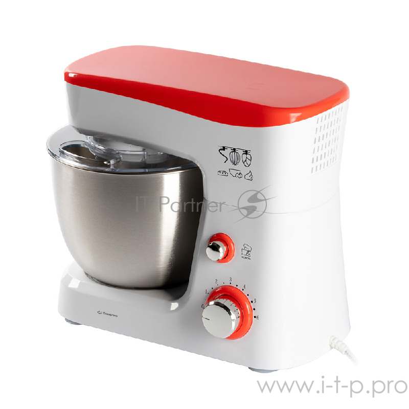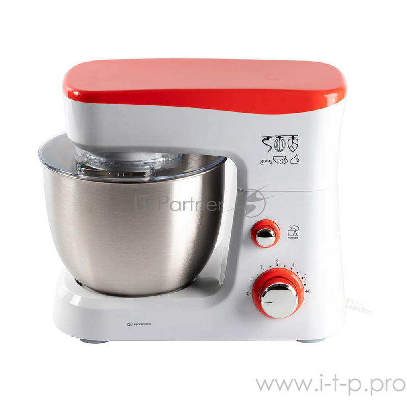 Миксер стационарный Endever Sigma-25, 1000 Вт., планетарный, многофункциональный, стальная чаша 3,5 л., регулировка скорости, белый/красный