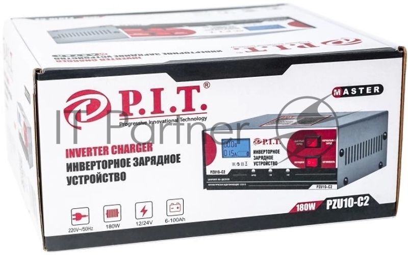 P.I.T Зарядное устройство инверторное PZU10-C2 МАСТЕР (230В-50 Гц,12/24 В,6-100Ач,180Вт, цифр. дисп.) [PZU10-C2]