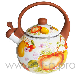 Чайник для плиты METALLONI ЕМ-25001/37A, эмал., ручка пластик Фруктовый сад, 2,5л со свистком (12)