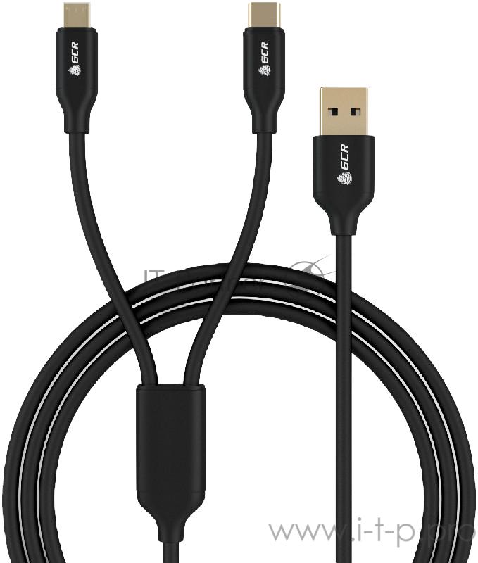 GCR Кабель 1.0m, 2 в 1 для быстрой зарядки, MicroUSB + TypeC, черный, NO Sync data, 22AWG, 3A, GOLD, GCR-51666 GCR Кабель 1.0m, 2 в 1 для быстрой зарядки, MicroUSB + TypeC, черный, NO Sync data, 22AWG, 3A, GOLD, GCR-51666
