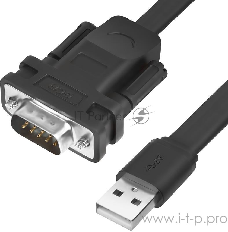 Greenconnect Конвертер-переходник 1.0m плоский, черный, 28/26 AWG, USB 2.0 AM / DB9 RS-232 PROF GCR-UOC5M-BCG-1.0m, чипсет PL2303RA Greenconnect Конвертер-переходник 1.0m плоский, черный, 28/26 AWG, USB 2.0 AM / DB9 RS-232 PROF GCR-UOC5M-BCG-1.0m, чи