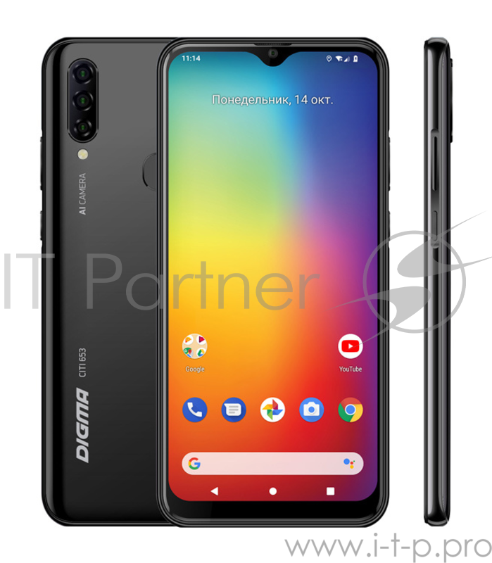 Смартфон Digma CITI 653 64Gb 4Gb черный моноблок 3G 4G 2Sim 6.53 720x1560 Android 9.0 16Mpix 802.11 b/g/n NFC GPS GSM900/1800 GSM1900 TouchSc MP3 FM microSD max128Gb