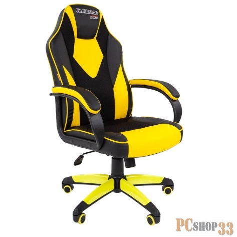 Игровое кресло Chairman game 17 чёрное/желтое (Экокожа/Ткань TW, пластик, газпатрон 3 кл, ролики, механизм качания)