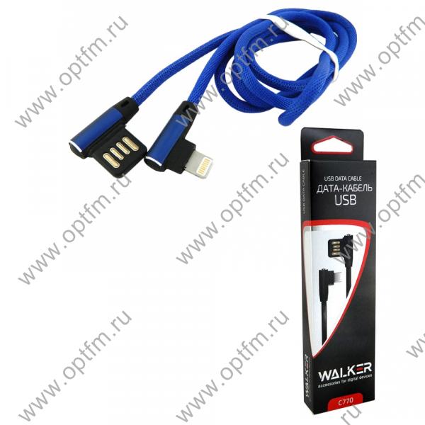 Кабель USB - Apple 8pin/lightning WALKER C770 (iOS11) в матерчатой обмотке, угловой разъем, синий