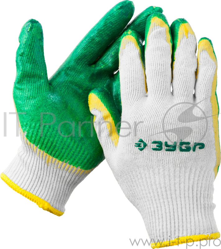 Перчатки ЗУБР МАСТЕР трикотажные, 10 класс, х/б, двойная обливная ладонь из латекса, L-XL [11459-XL]