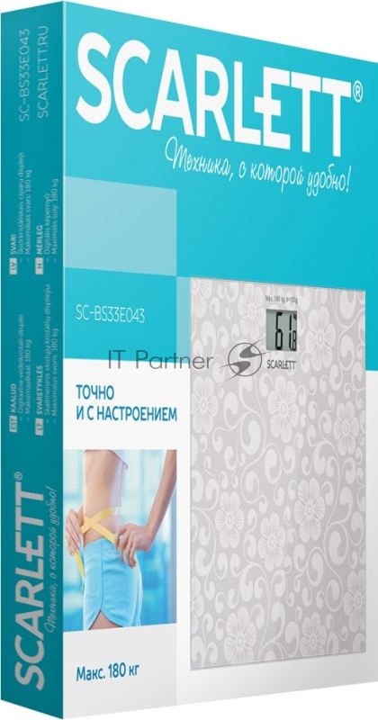 Весы напольные SCARLETT SC-BS33E043, электрон., 180 кг, стекло