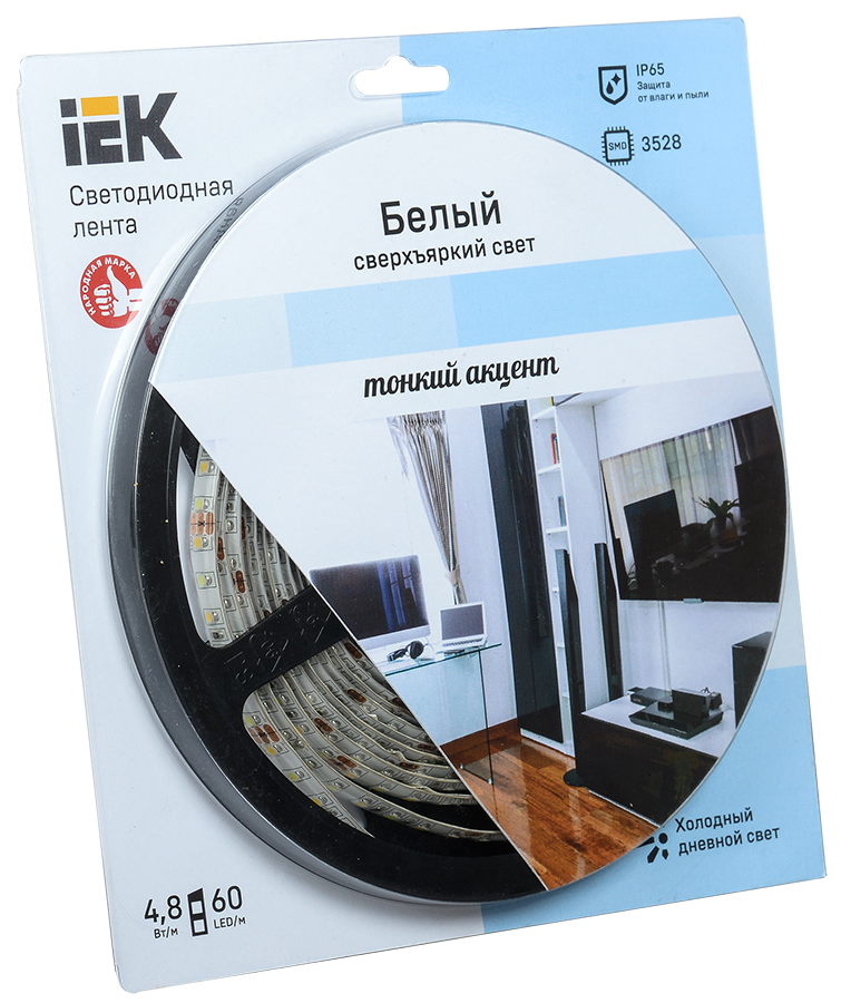 Iek LSR1-2-060-65-1-05 Лента LED 5м блистер LSR-3528W60-4.8-IP65-12V IEK-eco холодный белый