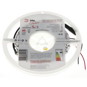 ЭРА Б0002332 Лента светодиодная 4,8Вт/м LS3528-60LED-IP20-WW-eco-5m Белый {Лента светодиодная 5м/8мм}