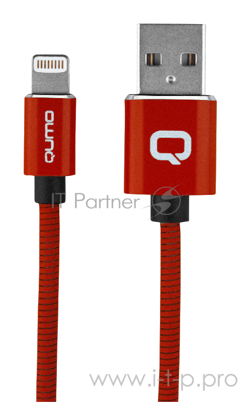 Кабель Qumo, MFI С48, USB-Apple 8 pin (1м, 5В, 2,4A, 12Вт, опл. металл. пружинка, кон. металл, красный)