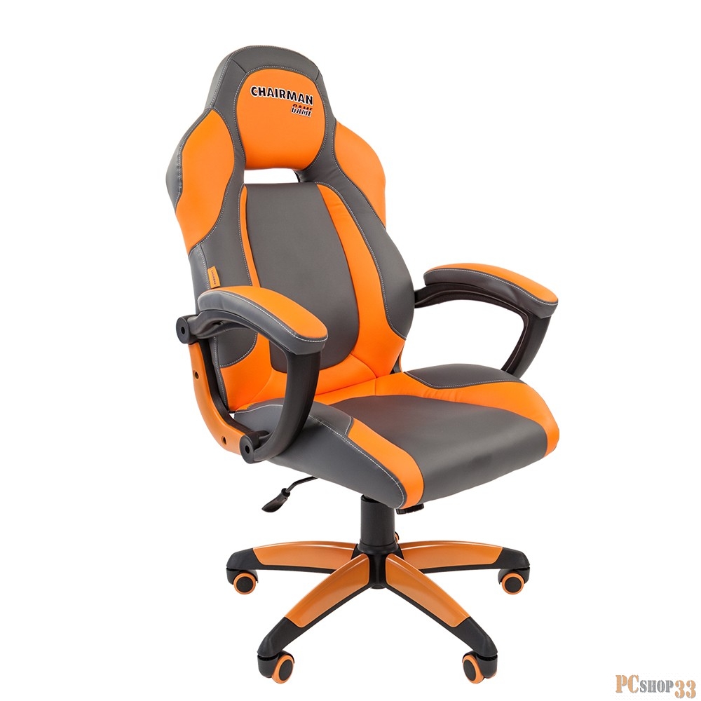 Игровое кресло Chairman game 20 серый/оранжевый (экокожа, регулируемый угол наклона, механизм качания)