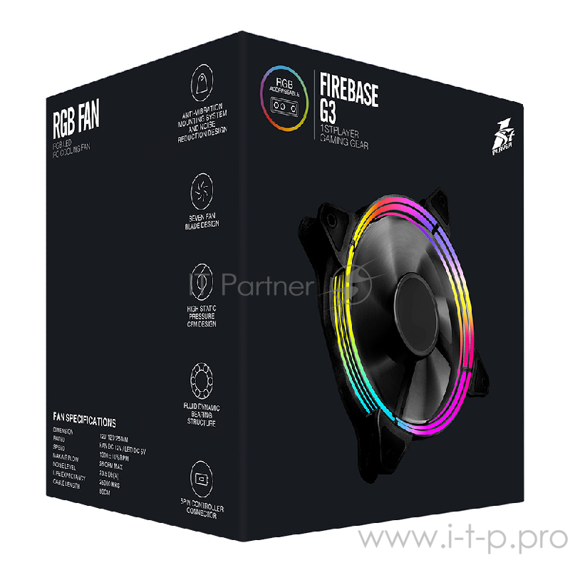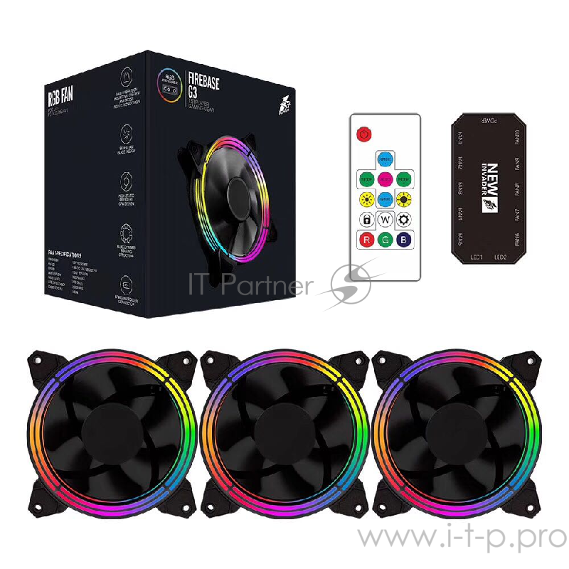 Комплект вентиляторов (3 шт.) 1STPLAYER FIREBASE G3 / controller & remote / 120mm, RGB, 5-pin, 1200rpm, 45.7cfm, 12V, 20dBA / G3