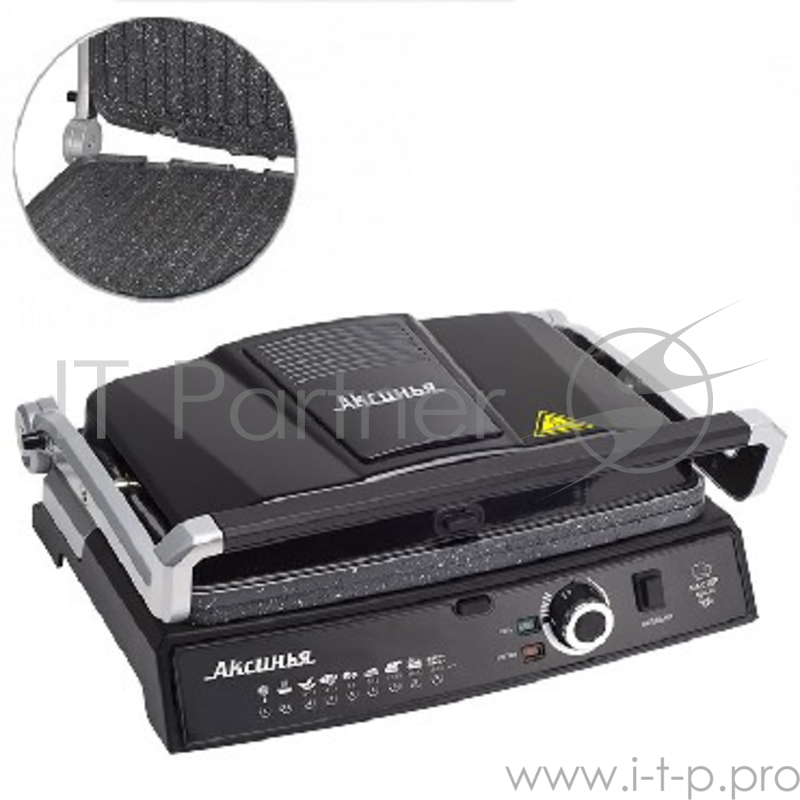 Электрогриль АКСИНЬЯ КС-5210 черный предназначен для жарки мяса, рыбы и овощей, его можно использовать в качестве пресса для сэндвичей и гриля для барбекю в бытовых условиях Съемные жарочные панели Гранитное антипригарное покрытие жарочных панелей Пл