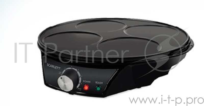 Блинница SCARLETT SC-PM229S01 черный Мощность 1200 Вт, Плавная регулировка температуры – равномерно прожаривается любое тесто: тонкие блинчики, оладьи, глазунья и даже сырники, Температурный диапазон от 50 до 210 °C, Фиксированная панель на 4 блинчик
