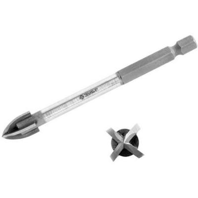 Сверло по кафелю, керамике, стеклу, с четырьмя режущими лезвиями, шестигранный хвостовик, 10 мм, ЗУБР ЭКСПЕРТ 29845-10 [29845-10]