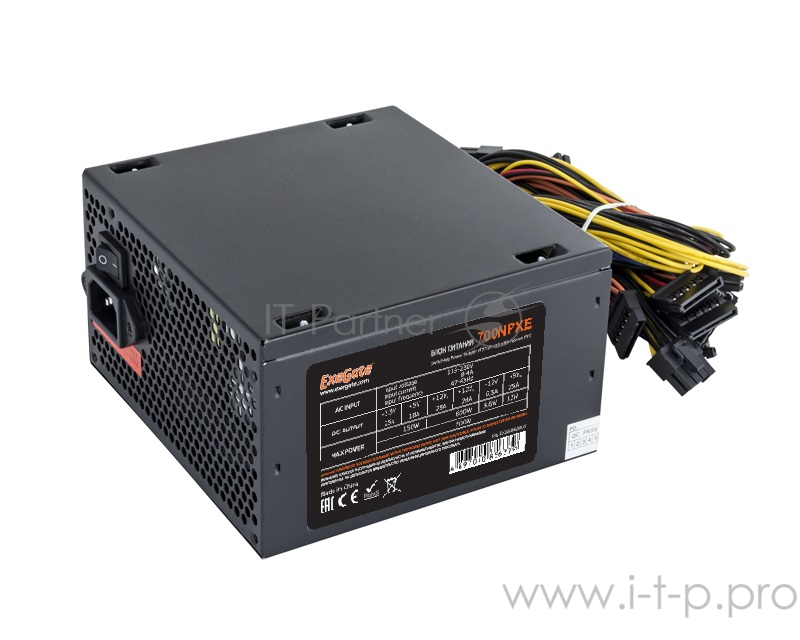 Блок питания 700W ExeGate 700NPXE(+PFC), ATX, PC, black, 12cm, 24p+(4+4)p, 6/8p PCI-E,4*SATA,3*IDE,FDD + кабель 220V в комплекте