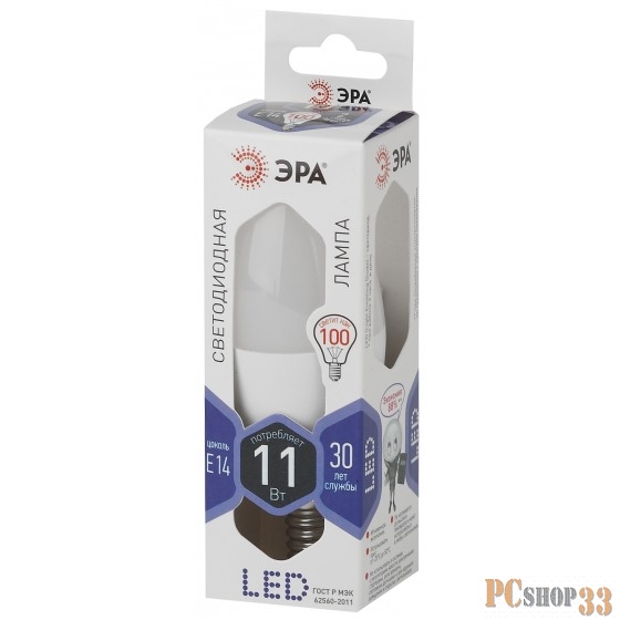 ЭРА Б0032984 Лампа ЭРА (диод, свеча, 11Вт, хол, E14 ) LED B35-11W-860-E14