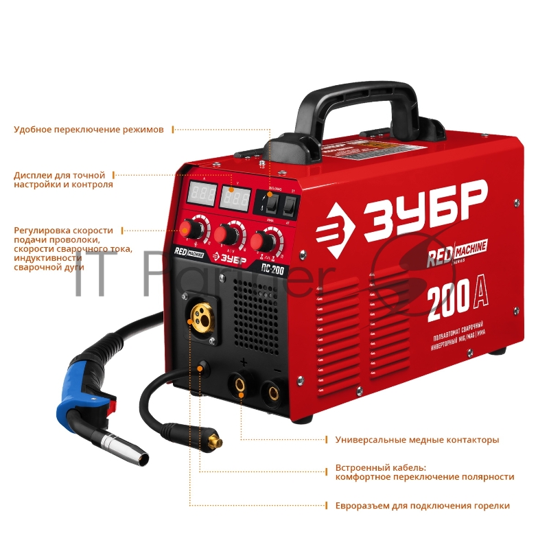 [Сварочное оборудование, Инверторы] ЗУБР [ПС-200] Полуавтомат сварочный инверторный { 200 А }