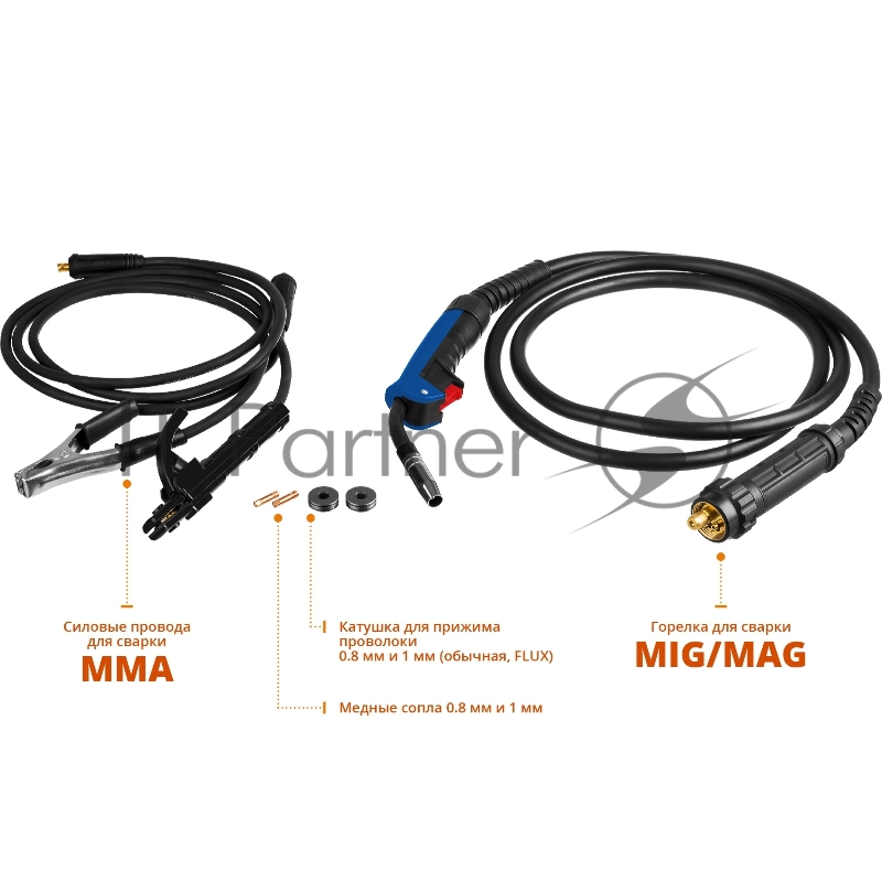Полуавтомат сварочный ЗУБР ПС-200 инверторный, 200 А, MIG/MAG/MMA, 6400 Вт, 220 В, 1.6-5 мм