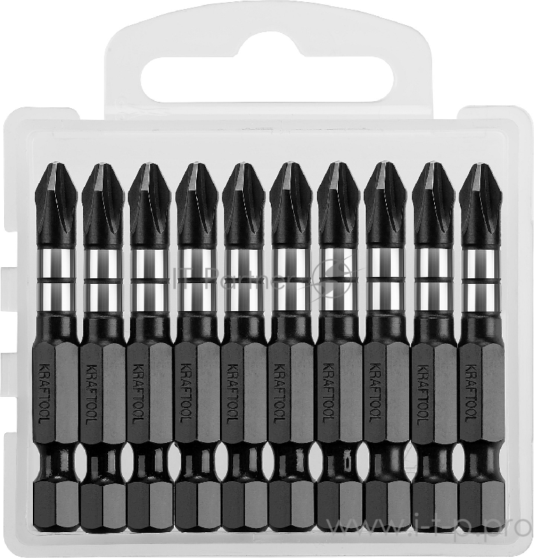 Биты KRAFTOOL Impact Pro, Philips, тип хвостовика E 1/4, PH2, 50мм, 10шт, в пластиковом боксе [26191-2-50-S10]