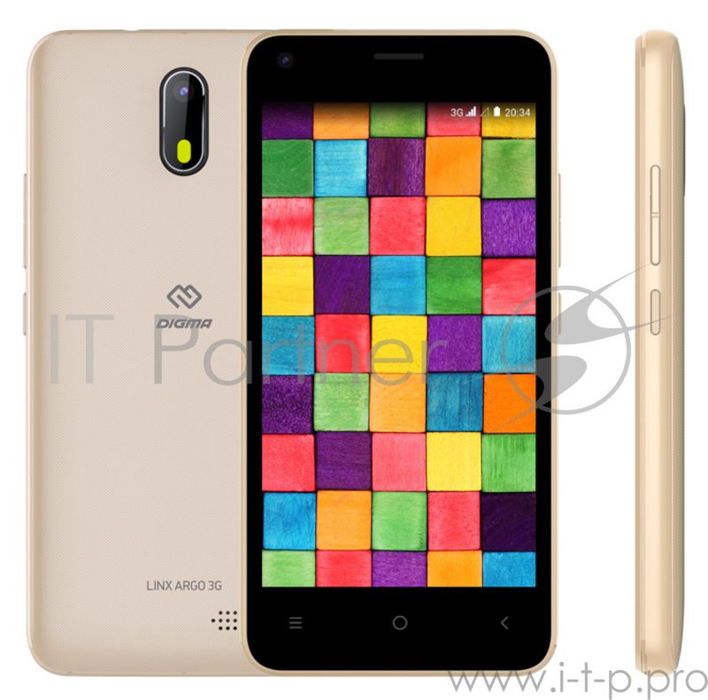 Смартфон Digma LINX Argo 3G 8Gb 512Mb золотистый моноблок 3G 2Sim 4.5 480x854 Android Go 2Mpix 802.11bgn GPS GSM900/1800 GSM1900 TouchSc MP3 FM microSDHC max32Gb