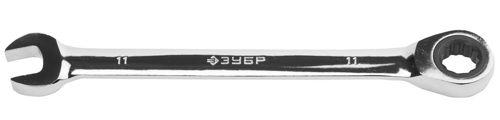 Ручной инструмент Ключ ЗУБР ПРОФИ гаечный комбинированный трещоточный, Cr-V сталь, хромированный, 11мм 27074-11