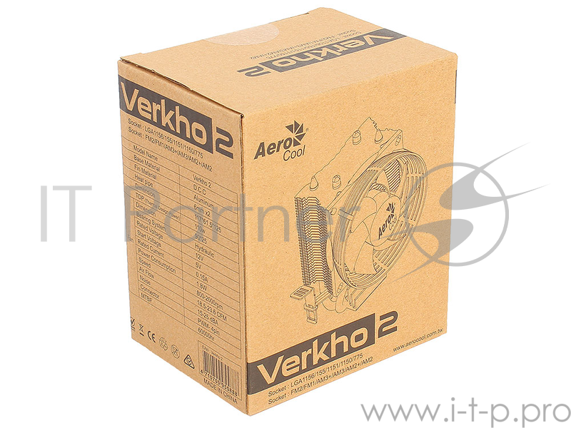 Кулер Aerocool Verkho 2 , до 110W, 2х теплотрубки, PWM, 800-2000 RPM, LGA 1156/1155/1151/1150/775 , FM2/FM1/AM3+/AM3/AM2+/AM2/940/ 2 тепловые