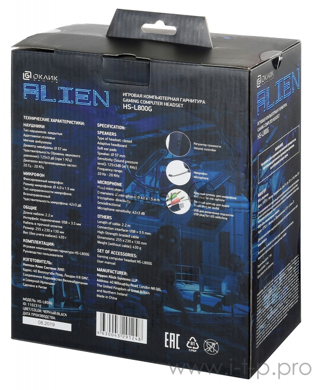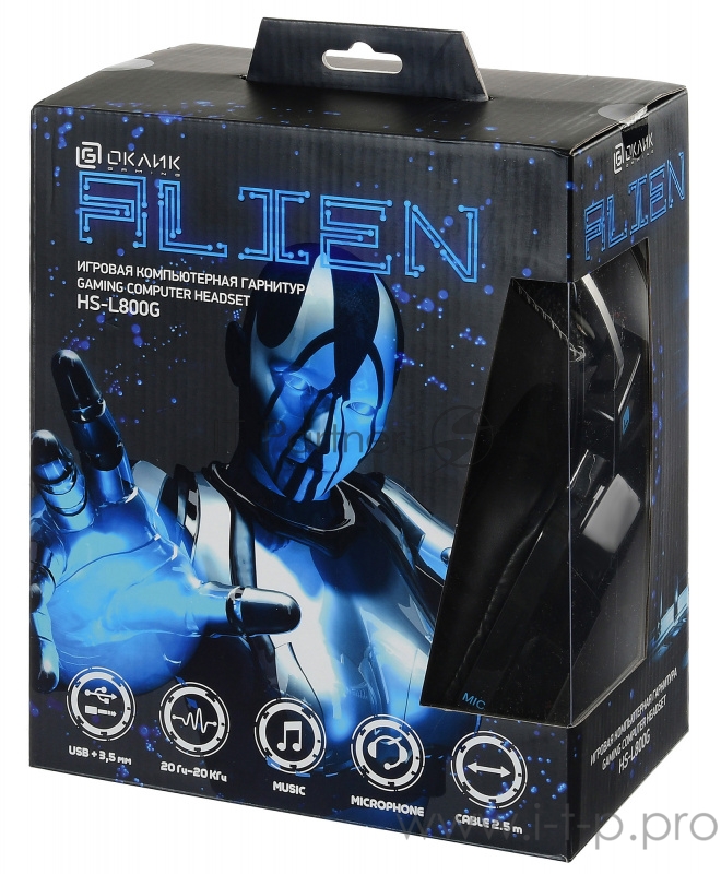 Наушники с микрофоном Oklick HS-L800G ALIEN черный 2.2м мониторы оголовье (HS-L800G)