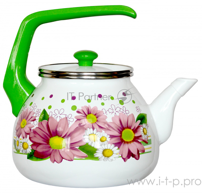 Чайник для плиты Interos Розовые герберы 3,0л эмалированный с кр.