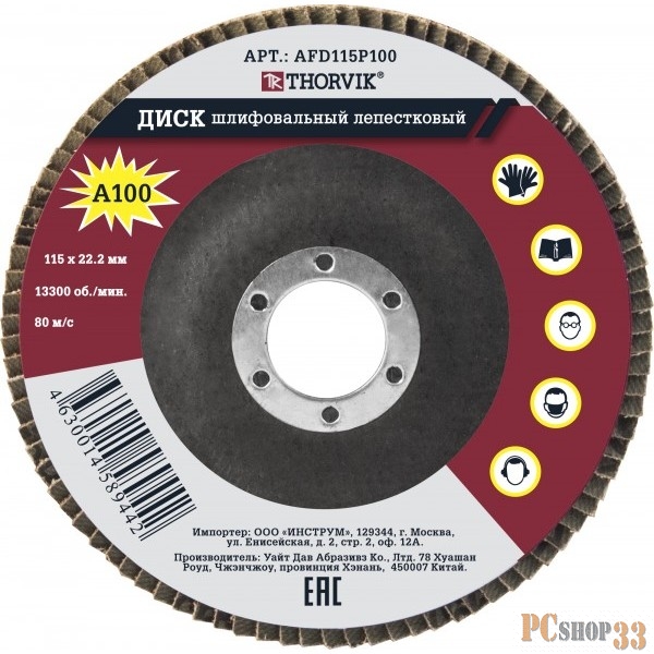 Диск шлифовальный AFD115P100 от компании Thorvik