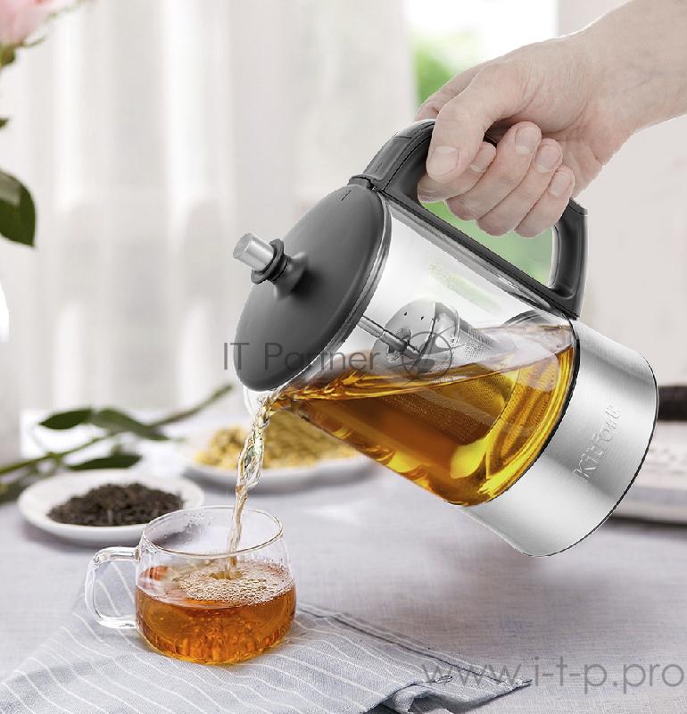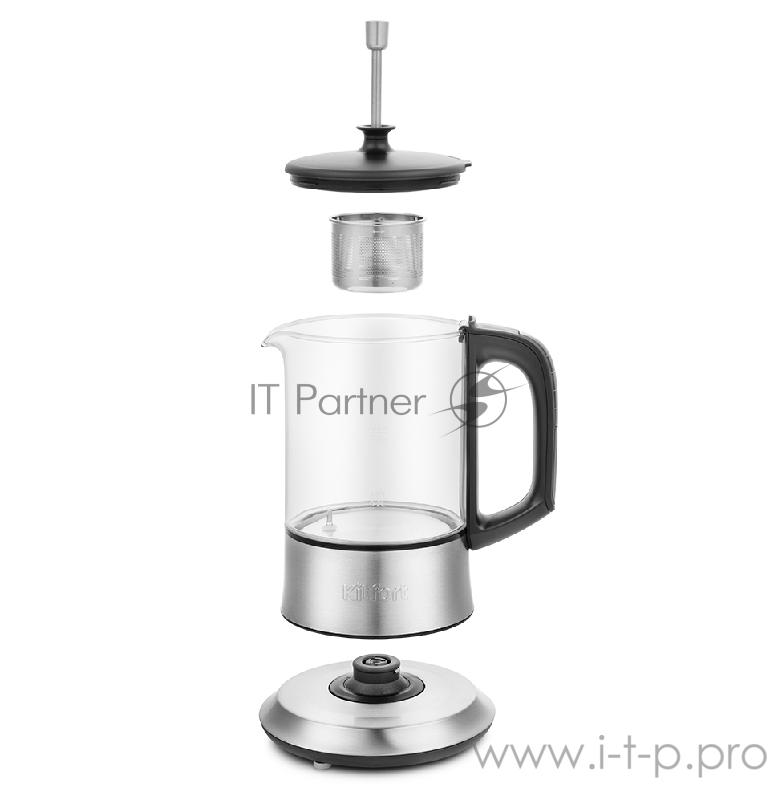 Чайник электрический Kitfort KT-6108 0.5л. серебристый (корпус: стекло)